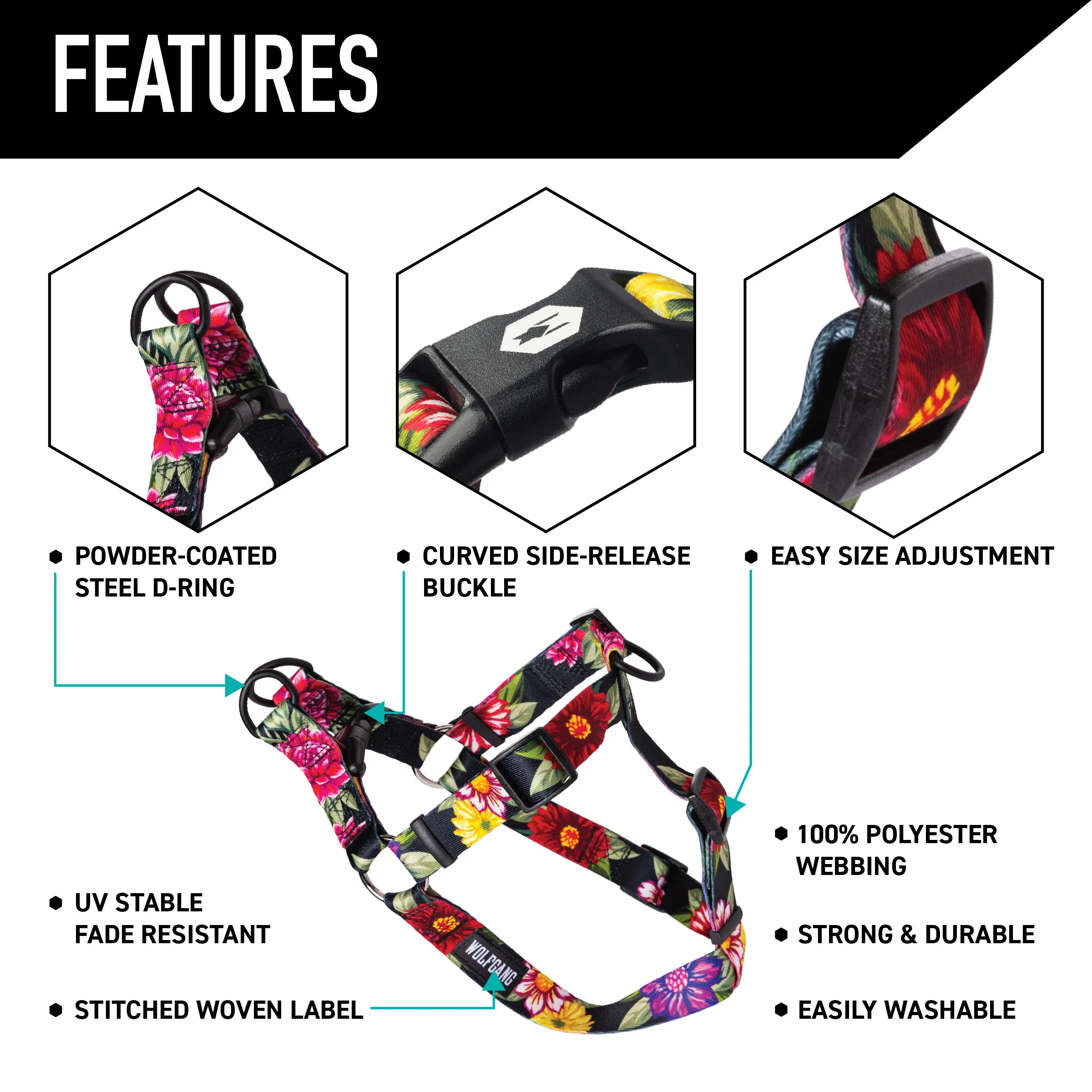 DarkFloral Dog Harness