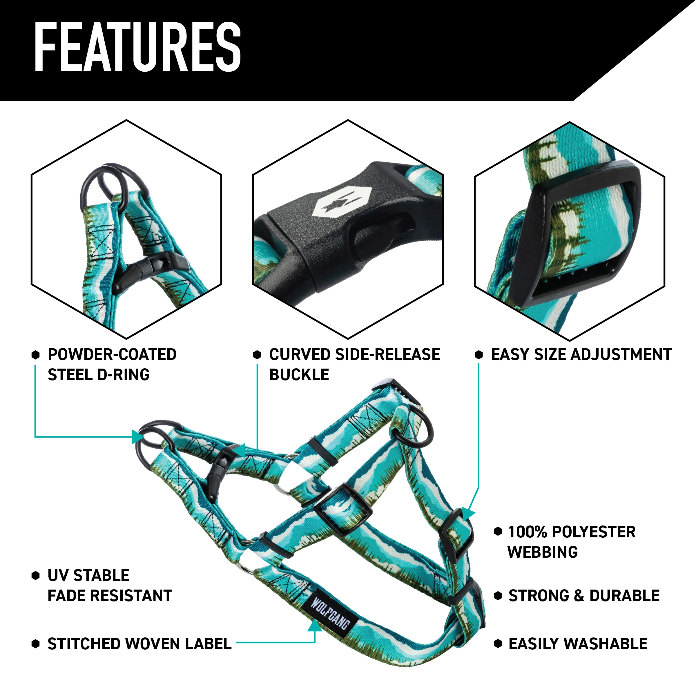 Wolfgang dog accessories are made with premium craftsmanship, designed to stand up to daily use and the toughest conditions while maintaining functionality. Made with Highly durable, abrasion-resistant polyester webbing to resist wear and tear, while the adjustable fit ensures a secure and comfortable experience for your pup.